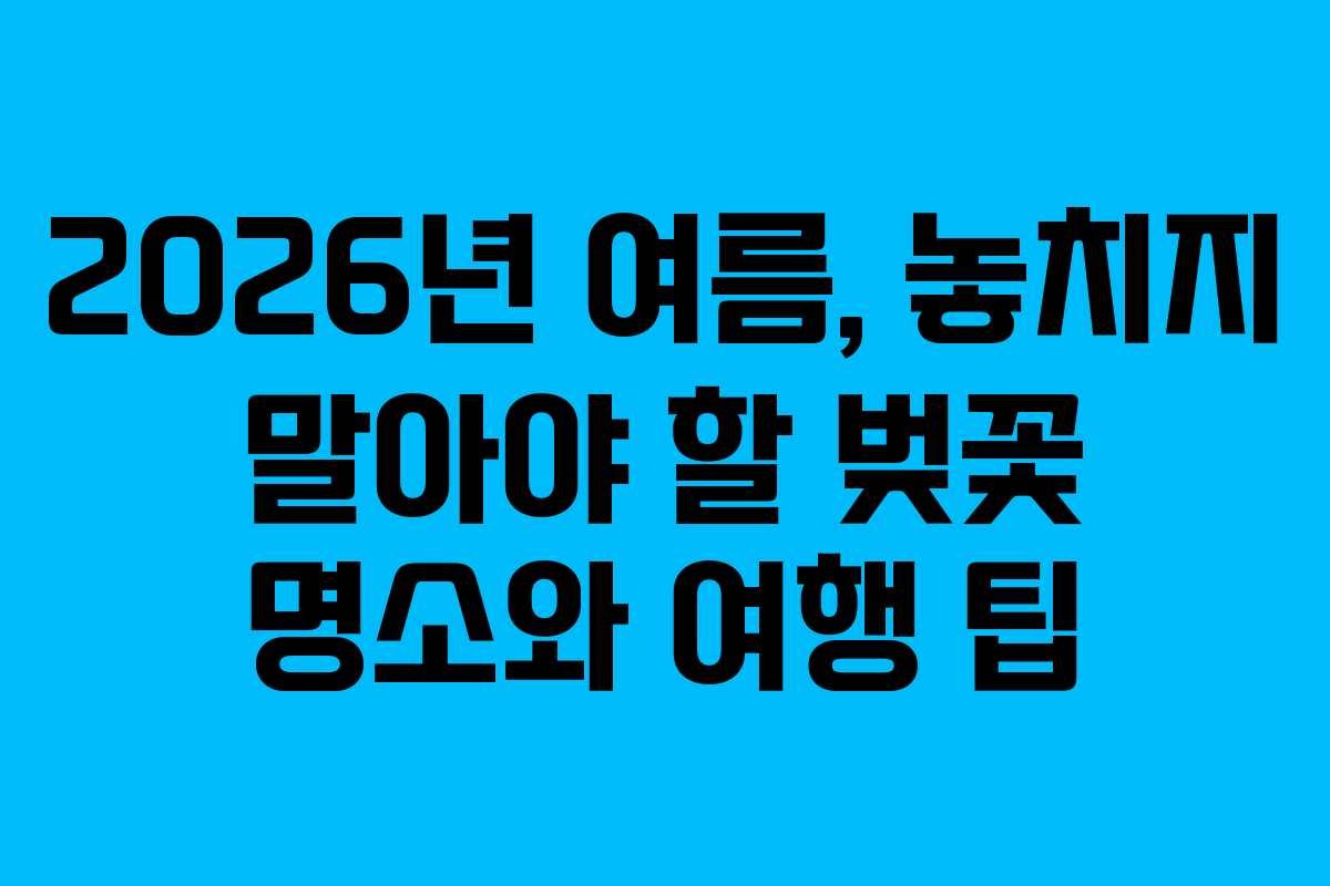 2026년 봄에는 놓치지 말고 벚꽃이 만개하는 순간을 즐기기 위해 가까운 벚꽃 명소를 방문해보세요. 서울, 부산, 제주 등에서 다양한 벚꽃을 만끽할 수 있는 장소가 많습니다. 여행을 떠나기 전에 개화 시기를 확인하고, 가장 아름다운 순간을 즐기세요.