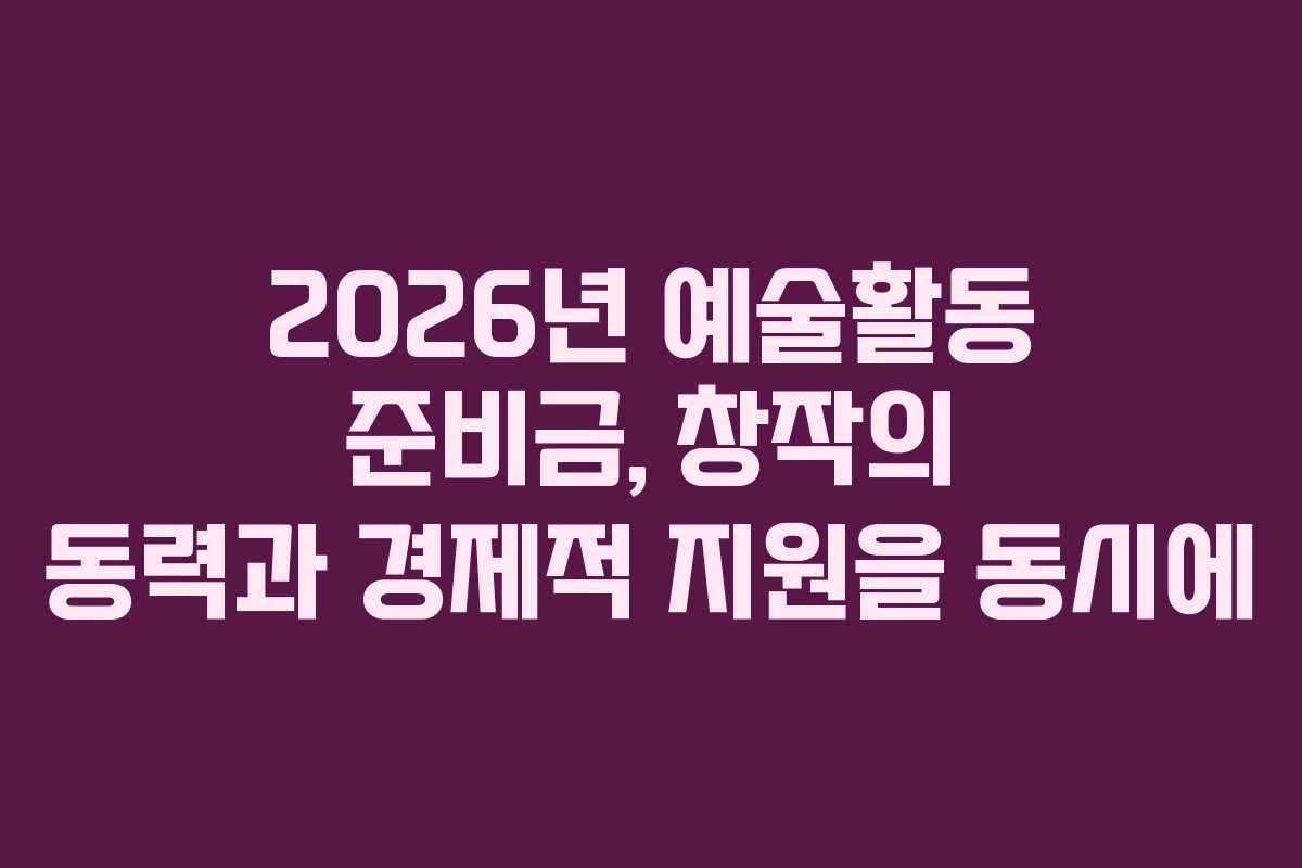 2026년 예술활동 준비금, 창작의 동력과 경제적 지원을 동시에