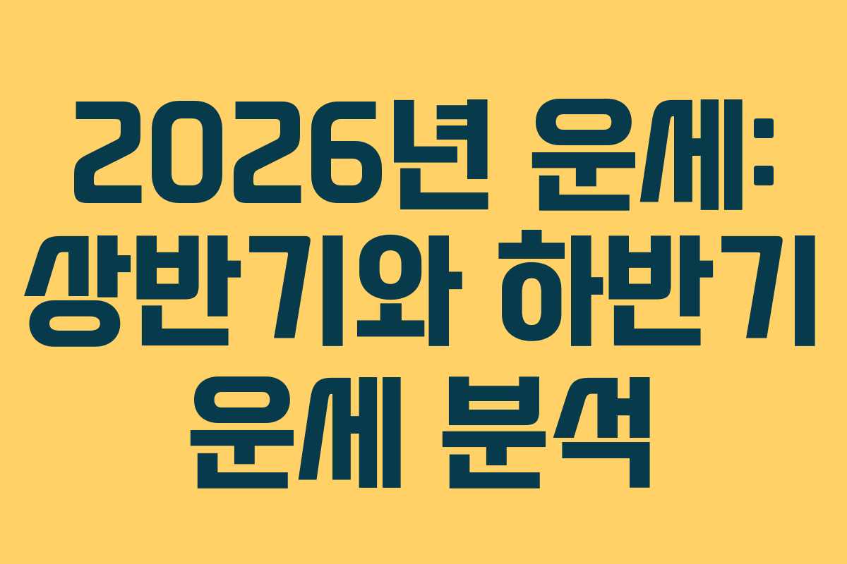 2026년은 많은 이들에게 중요한 해가 될 것입니다. 이 글에서는 상반기와 하반기의 운세를 살펴보고, 사주와 토정비결에 따른 다양한 운의 흐름에 대해 알아보겠습니다.