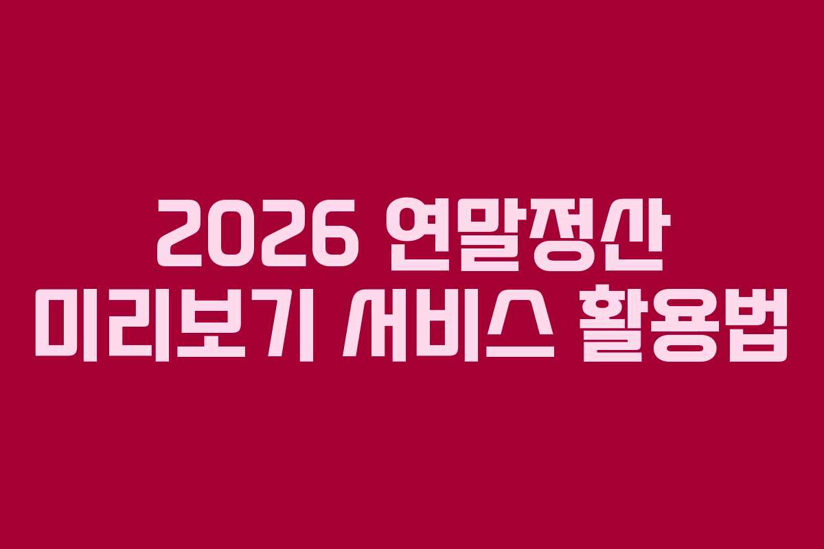 2026년 연말정산 미리보기 서비스는 근로자들이 세금을 미리 확인하고 절세 전략을 세울 수 있도록 도와주는 필수적인 도구입니다. 이를 통해 여러분의 소중한 재정을 보호하고 더 나은 재테크를 실현하시기 바랍니다.