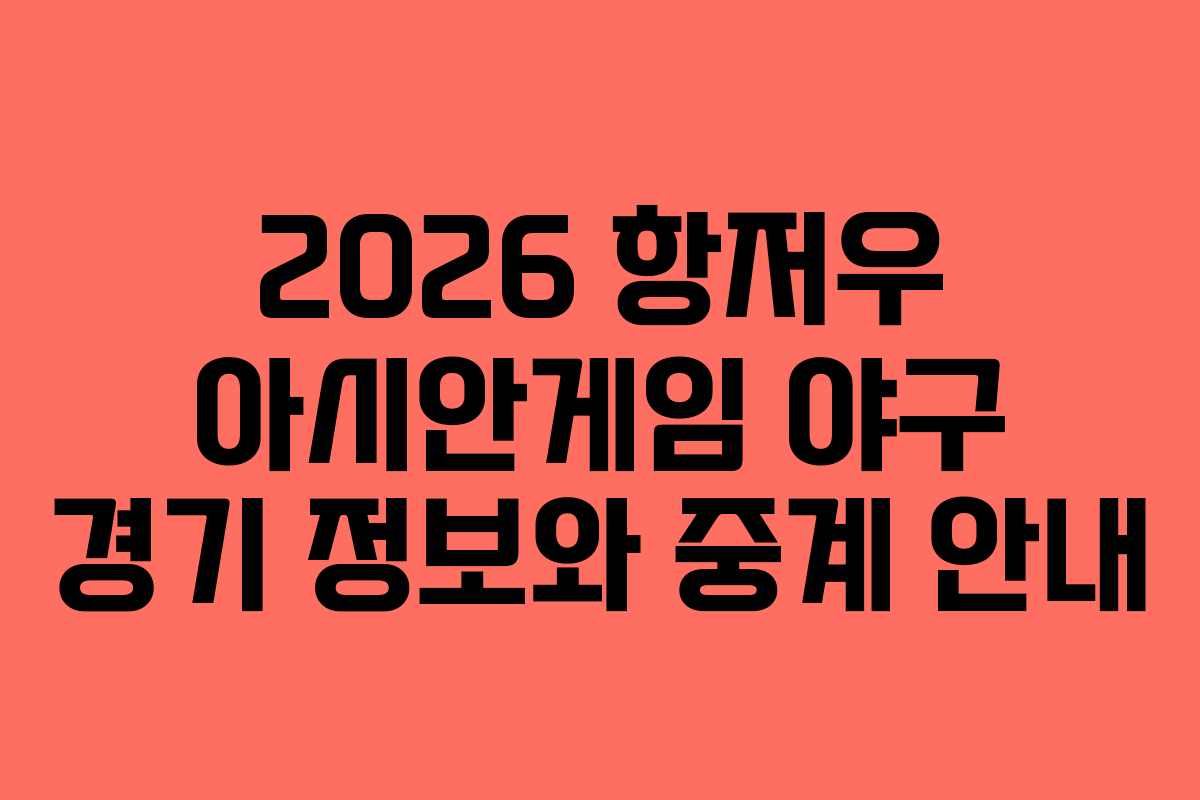 2026년 항저우 아시안게임이 다가오고 있습니다. 이번 대회에서 한국 야구팀은 금메달을 목표로 하고 있으며, 팬들은 실시간 중계를 통해 경기를 관전할 수 있습니다. 야구 중계를 통해 실시간으로 경기를 즐기는 방법과 함께 다양한 정보를 제공하겠습니다. 경기 일정, 대표팀 명단, 조편성 등 중요한 사항을 함께 알아보도록 하겠습니다.