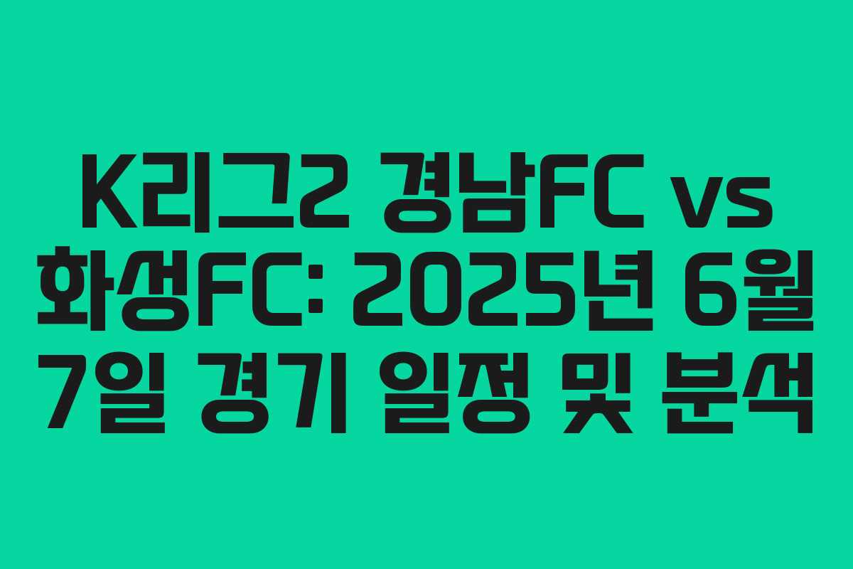 K리그2 경남FC vs 화성FC: 2025년 6월 7일 경기 일정 및 분석