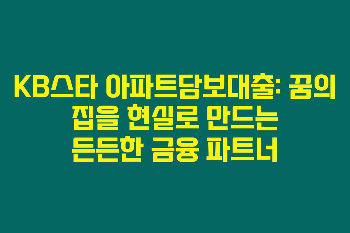 KB스타 아파트담보대출: 꿈의 집을 현실로 만드는 든든한 금융 파트너