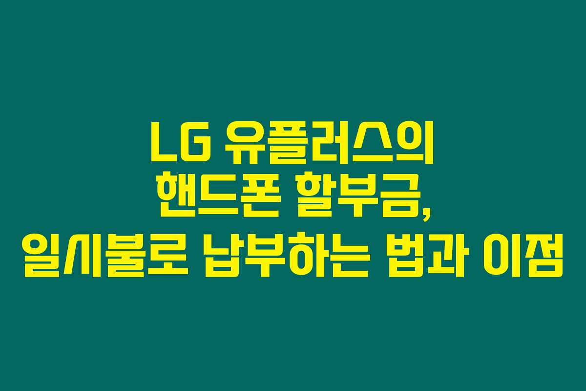 제가 직접 경험해본 결과로는, LG 유플러스에서 핸드폰을 할부로 구입한 후 잔여 할부금을 일시불로 납부하고 싶은 분들이 많더라고요. 사실, 이러한 옵션은 매우 유용할 수 있습니다. 아래를 읽어보시면, 할부금을 일시불로 납부하는 방법을 간편하게 알려드리겠습니다.