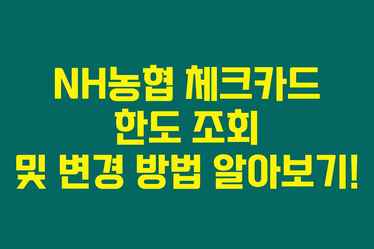 NH농협 체크카드를 사용하다 보면 한도가 궁금할 때가 많죠. 잘못하면 결제가 거절될 수 있는데, 이렇게 간단한 방법으로 한도를 조회하고 변경할 수 있어요. 아래를 읽어보시면 NH농협 체크카드 한도 관리의 모든 것을 알아보실 수 있습니다!
