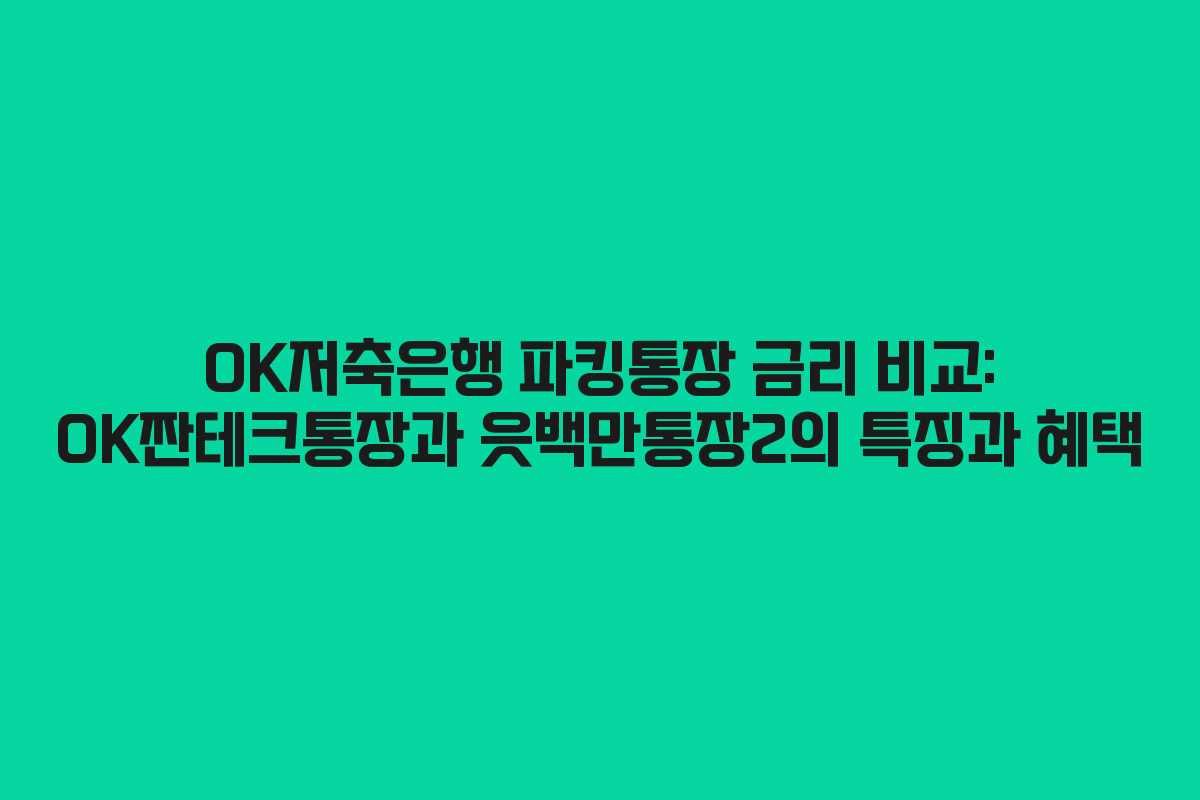 - OK저축은행 파킹통장 비교 및 활용 전략