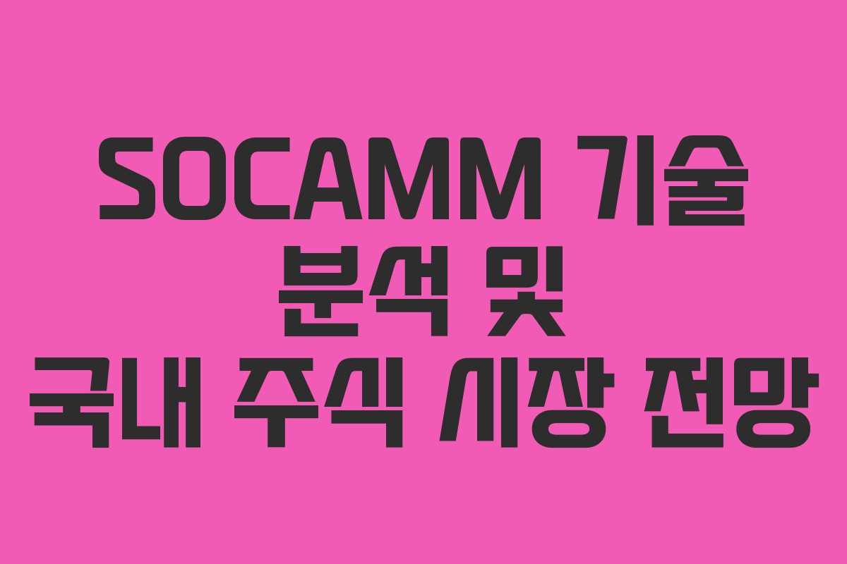 이러한 기업들은 SOCAMM 시장의 성장과 함께 매출 증가가 기대됩니다.